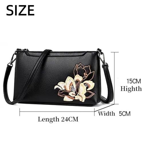 HOT ! Trendy Small Crossbody Purse Bag With Peony Flower Embroidery PU Leather Lightweight Handbags Shoulder Bag