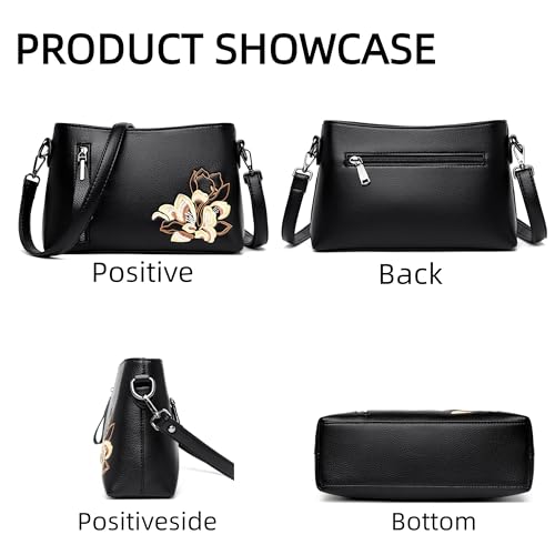 More information about Trendy Small Crossbody Purse Bag With Peony Flower Embroidery PU Leather Lightweight Handbags Shoulder Bag