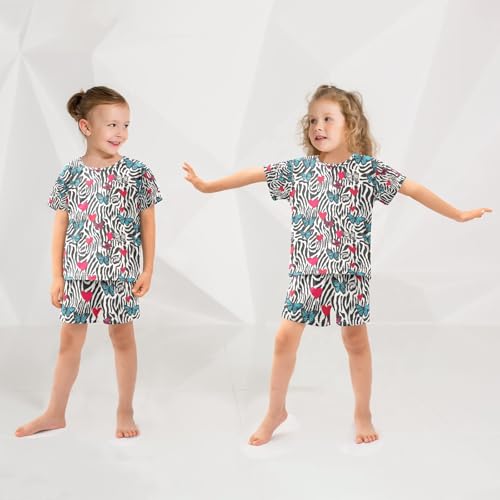 ALAZA Zebra Leopard Print Butterfly Pajamas Set Short Sleeve Cotton Sleepwear Summer Pjs 2 Piece 5-14Y 2