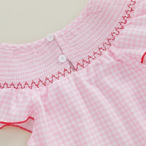 Infant Girls Embroidery Strawberry Romper Newborn Baby Coming Home Outfit Summer Casual Fly Sleeve Smocked Bodysuit 4