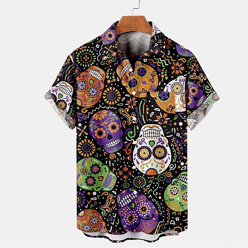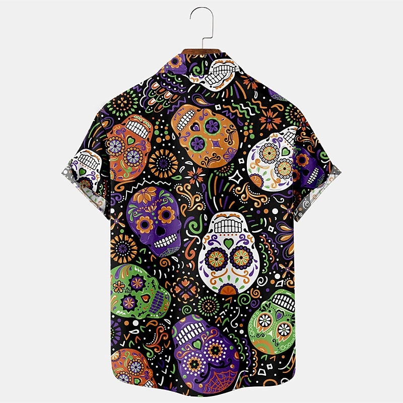 Highlights - Perfect for summer! - Stay cool with the short sleeve design. - Designed specifically for men. - Embrace the Hawaiian vibe with this contemporary shirt. - Make a statement with the special skull pattern. - The turndown neckline adds a touch of sophistication to the look.