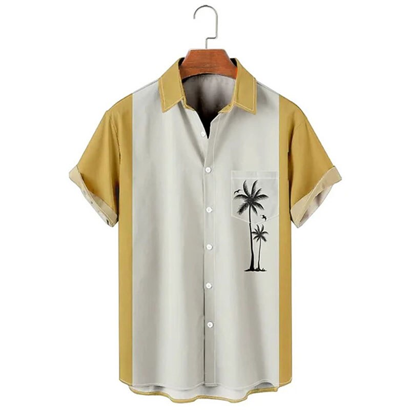 More information about Men's Color Block Palm Tree Tropical Plants Shirt Summer Shirt Summer Hawaiian Shirt Short Sleeve Shirt Turndown Fashion Streetwear Hawaiian Outdoor Street Casual Black Yellow Blue S M L