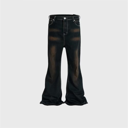 Men Women Flared Jeans Straight Baggy Denim Ribbons Washed Trousers Loose Cargo Pants