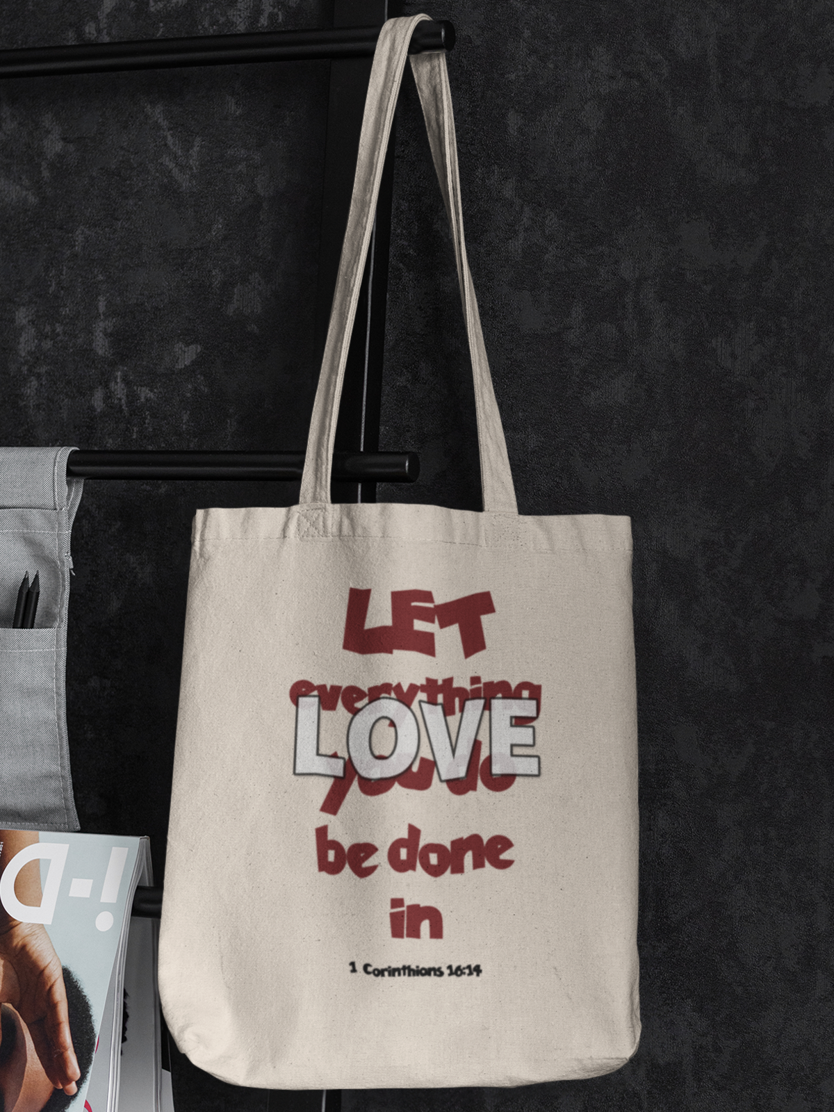 This "Let everything you do be done in Love" Tote Bag combines elegant design with practical functionality. Every detail has been carefully considered to ensure you get the supreme possible experience. The top-grade construction means this product will serve you well for years to come.
