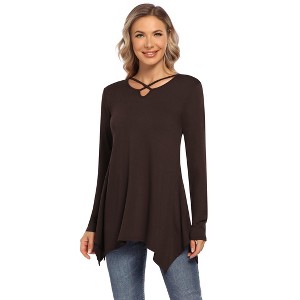 YESFASHION Ladies Tunic Tops Long Sleeve Swing Top Casual V Neck Blouses Flowy Fall Shirts for Leggings